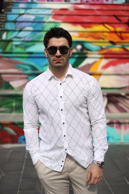 Kadın Beyaz Sırt Bağlama Detaylı çizgi Desen Triko Bluz