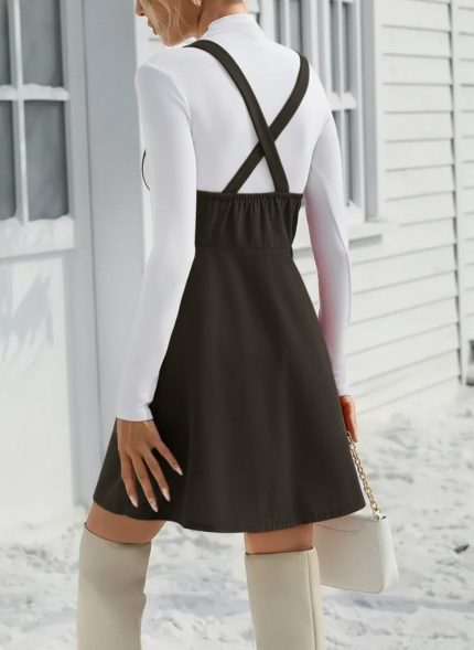 Kadın Askılı Düğmeli Mini Süet Elbise