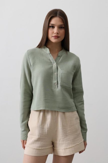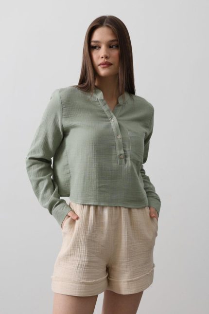 Cepli Hakim Yaka Bluz – Haki