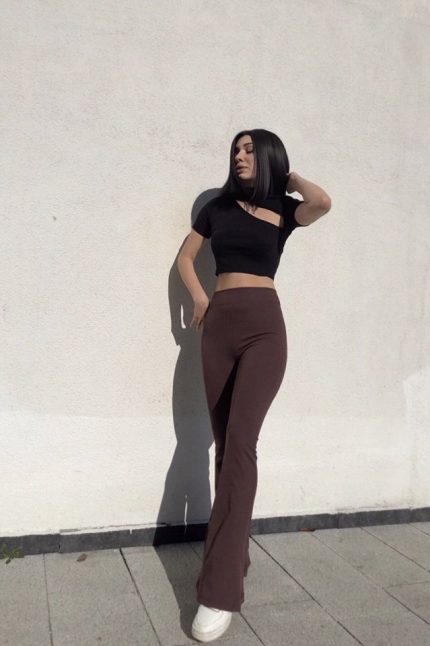 Kadın Yüksek Bel(lastikli) Geniş Paçalı Dalgıç Tayt