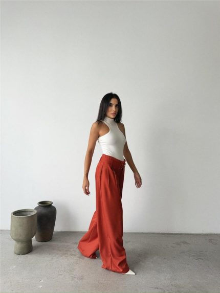 PALAZZO PANTOLON KUMAŞ KEMER DETAYLI – Kiremit