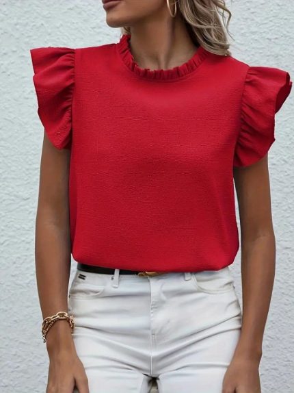Desenli Kolları Volanlı Pantolon Takım – Kırmızı