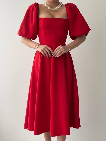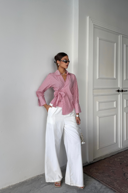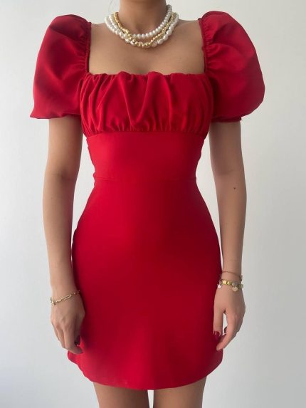 Bağcıklı Bluzlu Etek Takım – Kırmızı