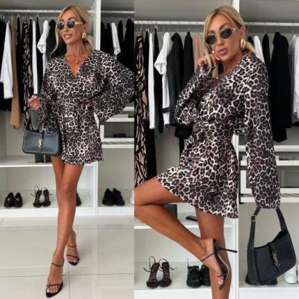 Orijinal fiyat: ₺584,90.₺526,41Şu andaki fiyat: ₺526,41.Kadın Yüksek Bel Beli Lastikli Bağcıklı Leopar Desenli Süprem Pantolon