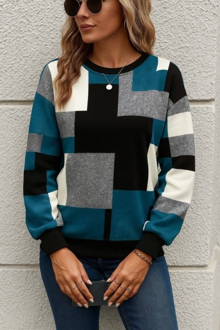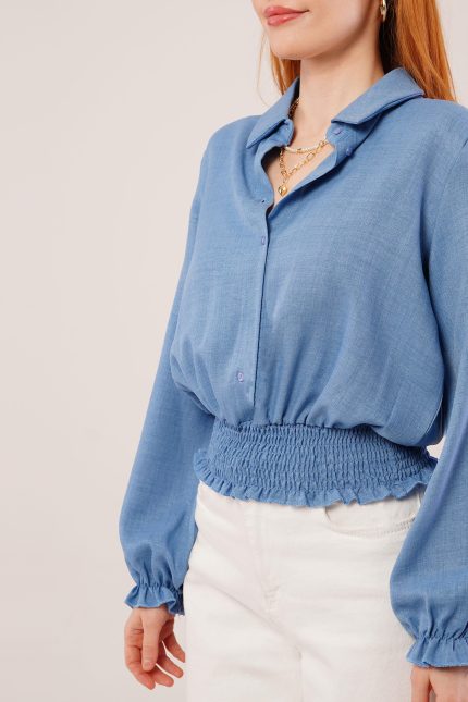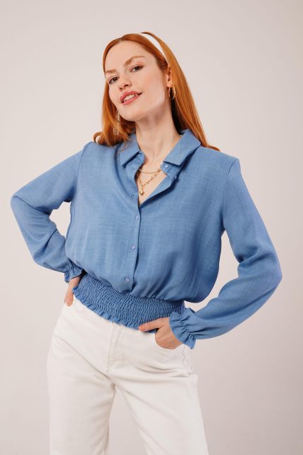 Kadın Uzun Kollu Geometrik Yakalı Gipe Detaylı Krep Bluz