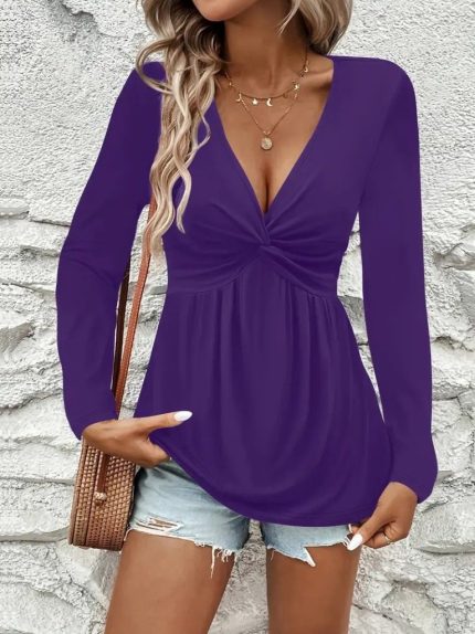 Kadın Uzun Kollu Dekolteli Sarmal Detaylı Viskon Bluz