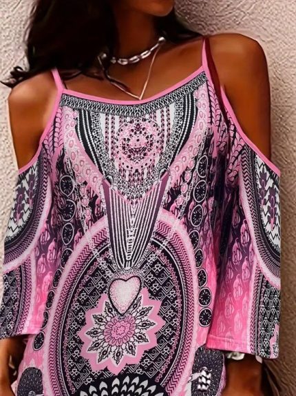 Orijinal fiyat: ₺798,65.₺718,78Şu andaki fiyat: ₺718,78.Kadın Askılı Omuzlardan Açık Truvakar Kol Desenli Kısa Süprem Elbise