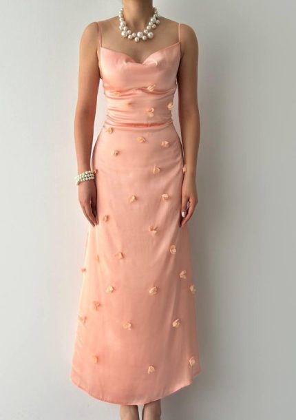 Çan Kesim Midi Pembe Saten Etek