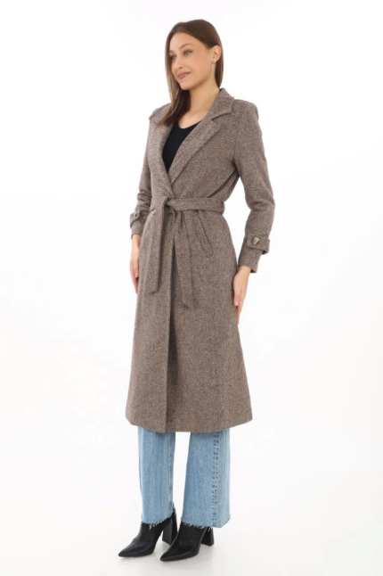 Astarlı Balık Sırtı Kaşmir Kaşe Kaban – Vizon