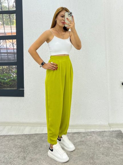 Kadın Yüksek Bel önden Büzgülü Ispanyol Ithal Krep Pantolon