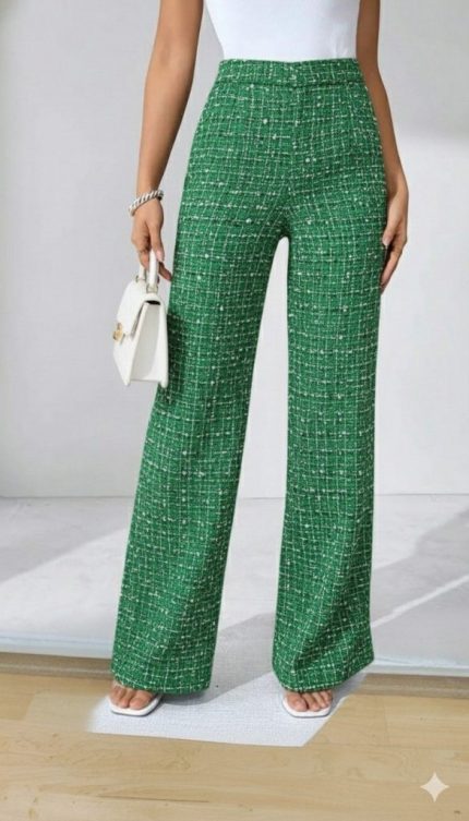 Kadın Yüksek Bel Paçaya Doğru Geniş Dokuma Pantolon