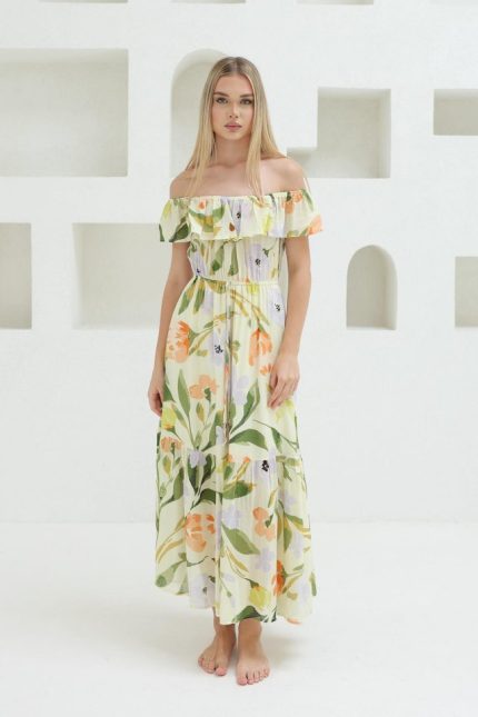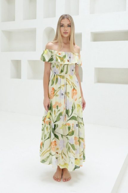 Madonna Yaka Elbise – Yeşil – Ekru