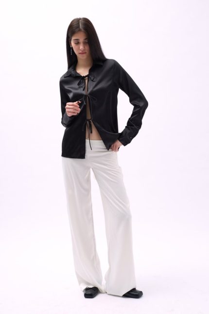 Bağcıklı Palazzo Bol Paça Pantolon – Gri