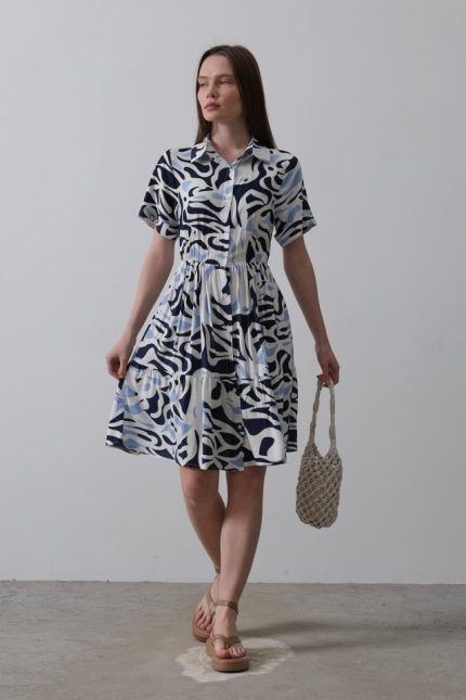Orijinal fiyat: ₺410,24.₺369,21Şu andaki fiyat: ₺369,21.Baskılı Keten Elbise – Lacivert