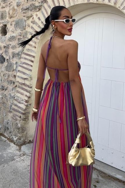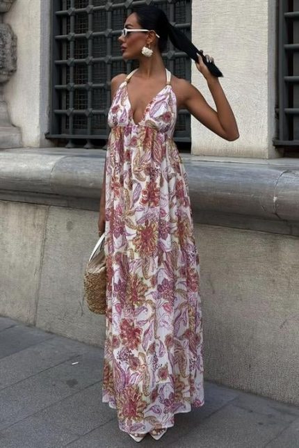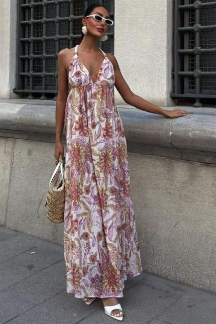 Marilyn Desenli Büzgülü Elbise 2514-13