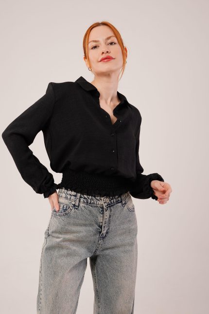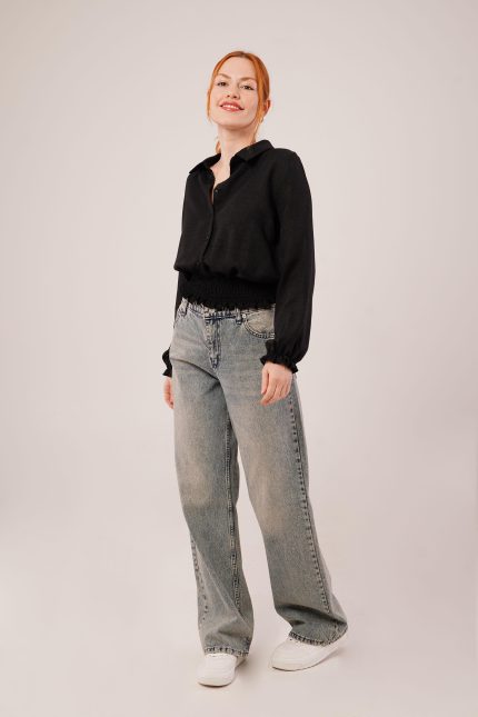 Bebe Yaka Püskül Detaylı Bluz- Desenli