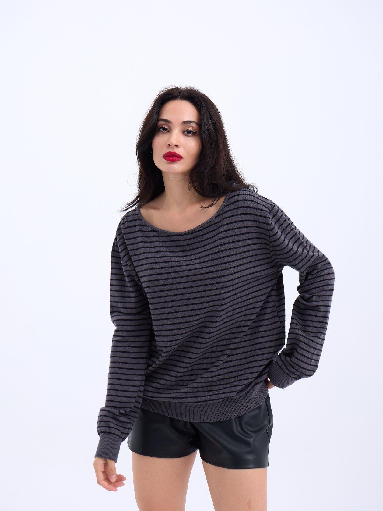 4215 TRİKO ÇİZGİLİ SALAŞ KAZAK-ANTRASİT-SİYAH