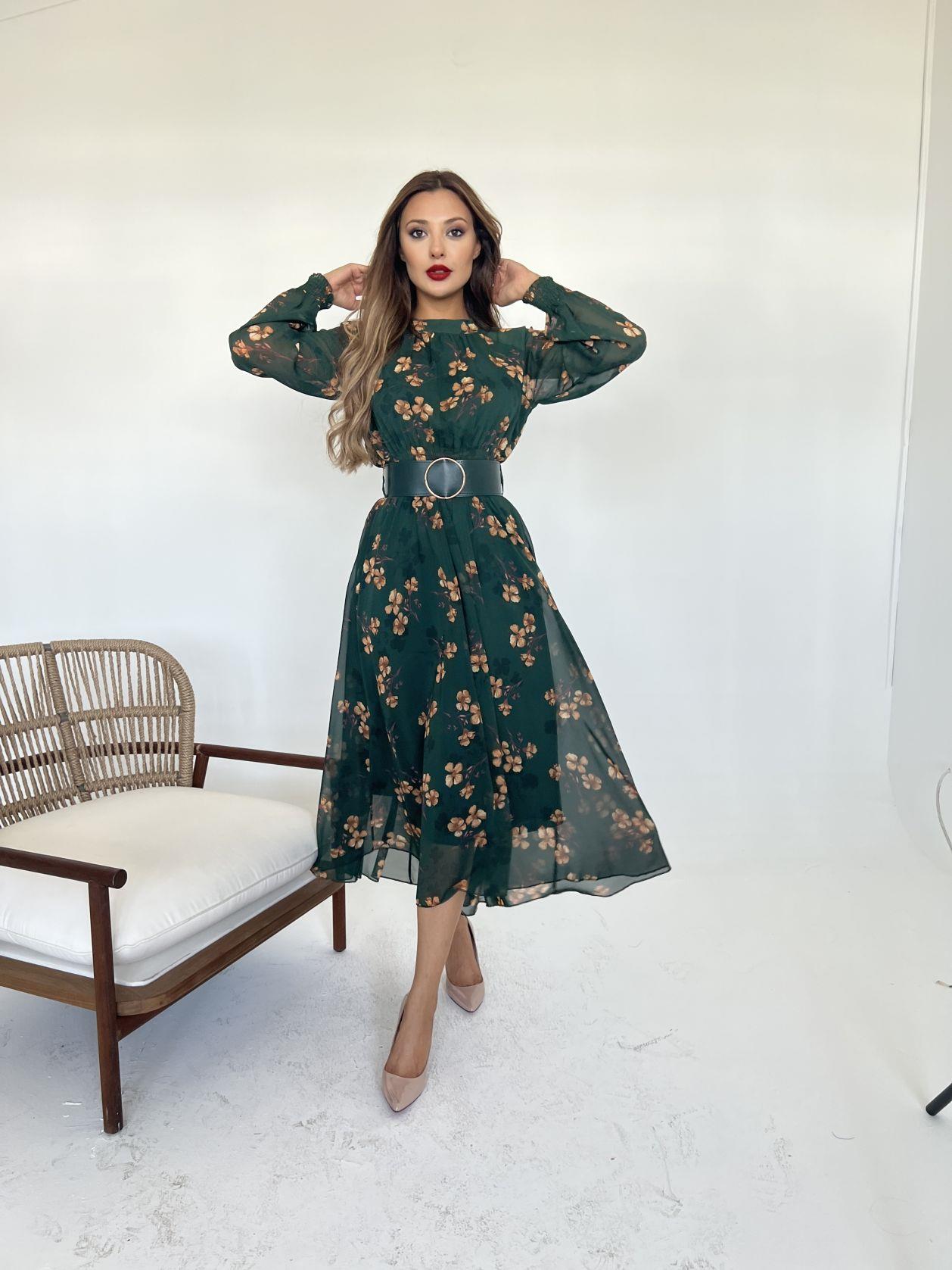 Kadın Uzun Kollu Yuvarlak Yaka Belden Kuşaklı önden Yırtmaçlı örme Krep Elbise