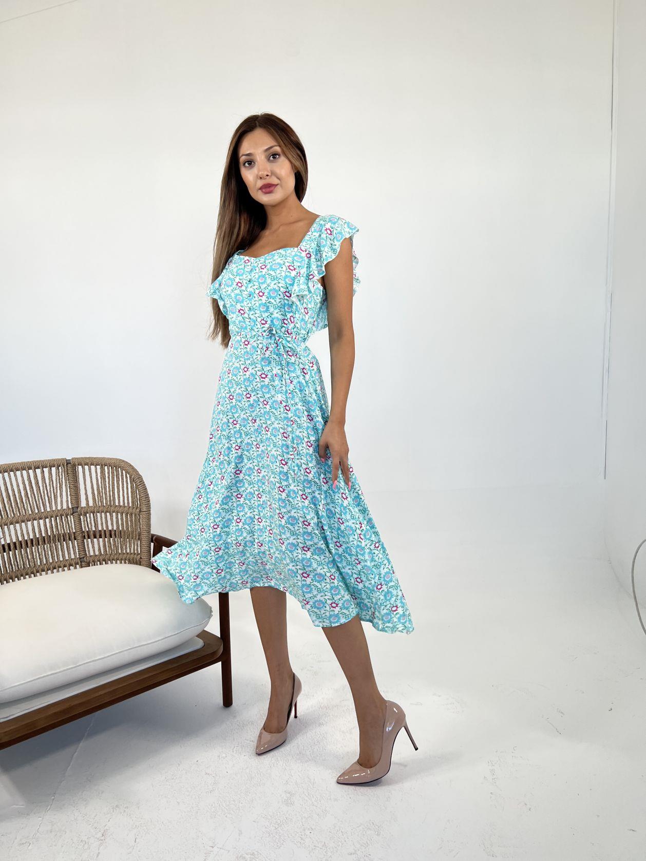 Kadın Kısa Kollu Madonna Yaka Fırfırlı Belden Yırtmaçlı Maksi Süprem Elbise