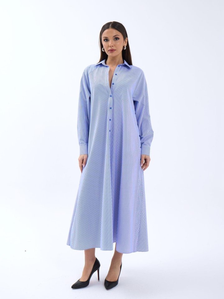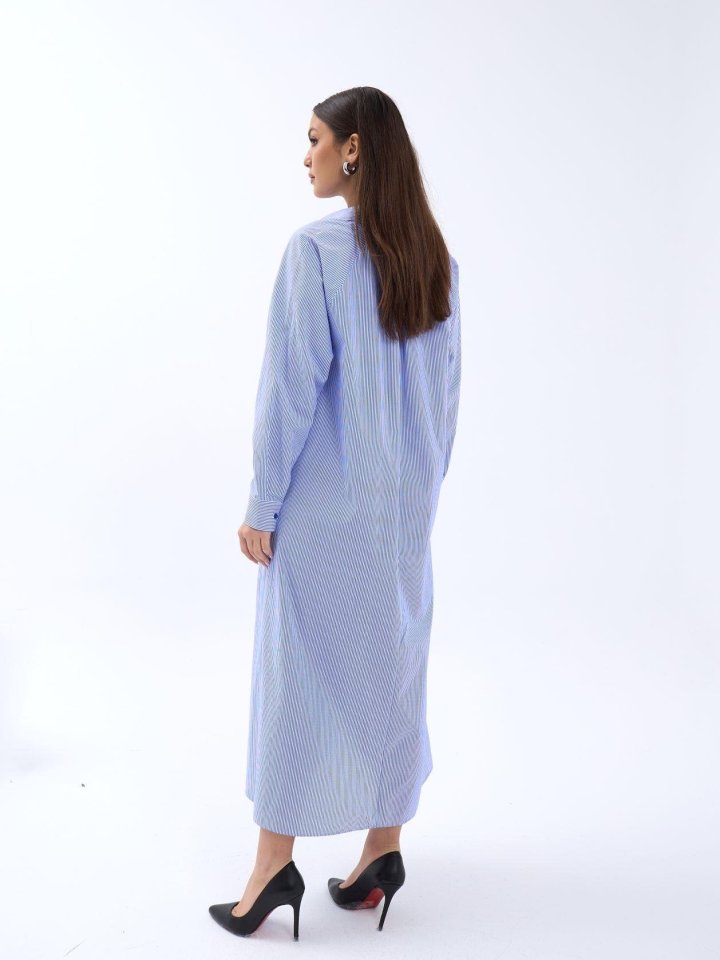 5857 ELBİSE-MAVİ BEYAZ ÇİZGİLİ
