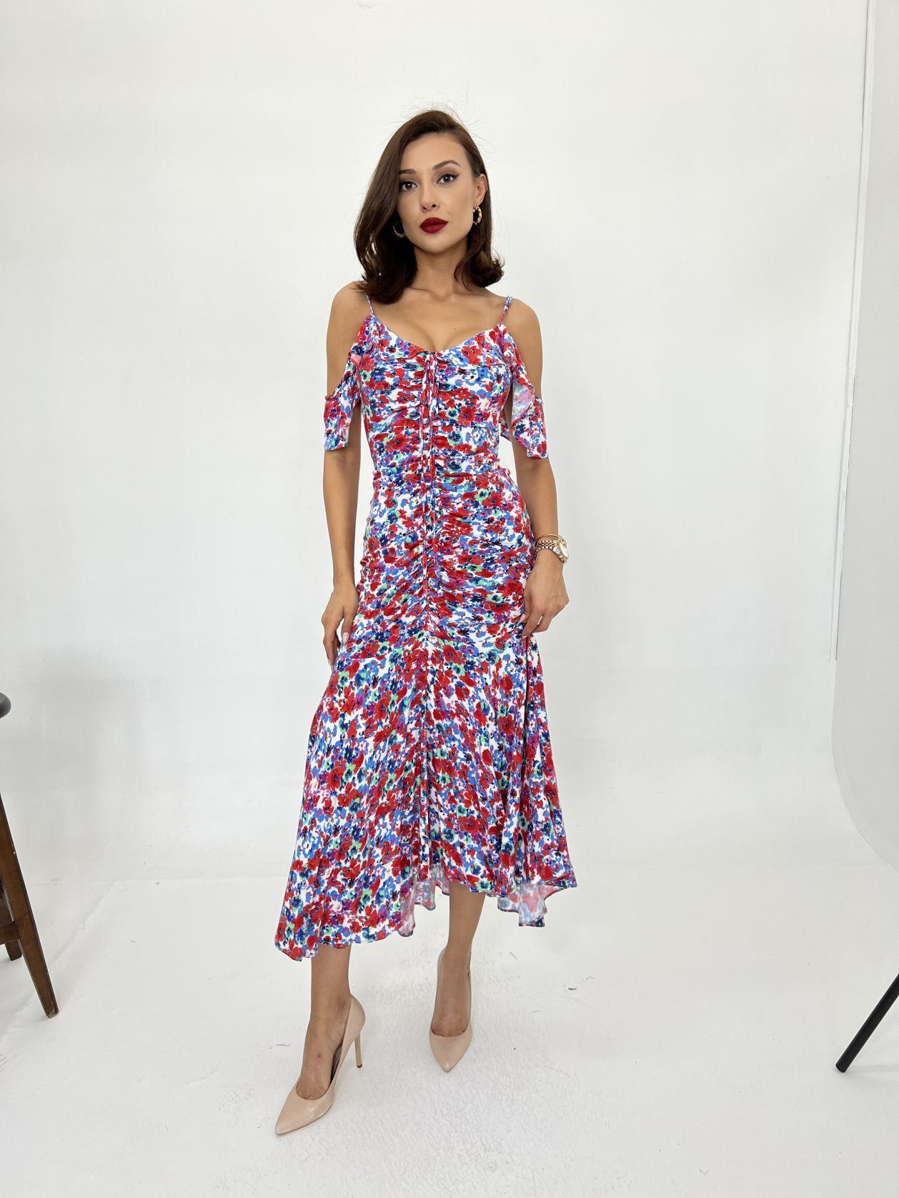 Kadın Askılı Soğuk Omuz Detaylı Modal Elbise
