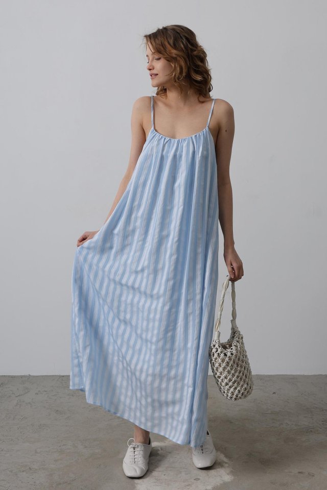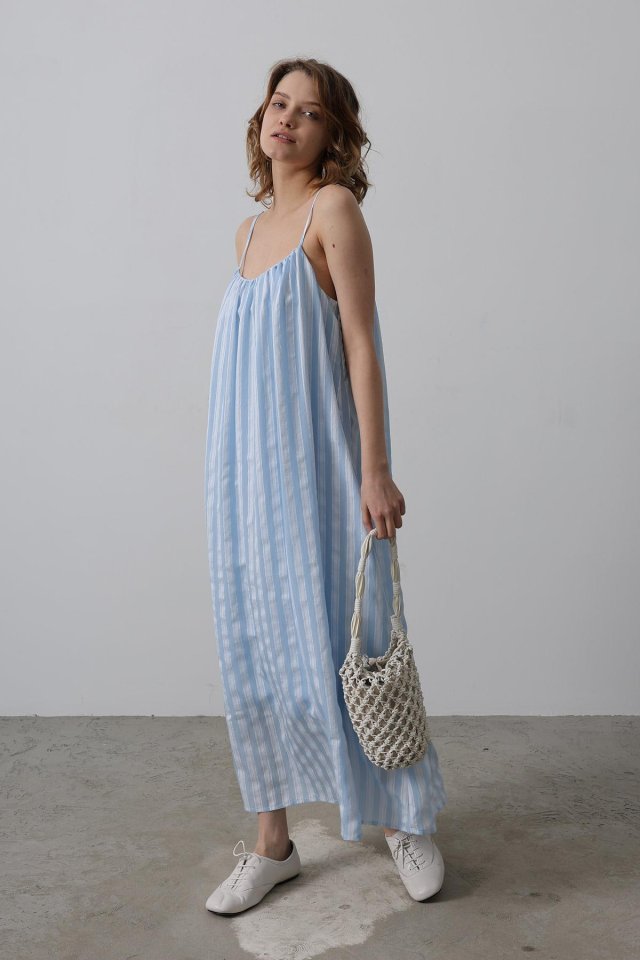 Askılı Çizgi Desen Elbise – Bebe Mavisi