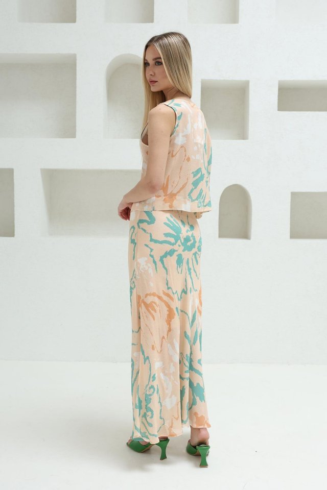 Bağcıklı Bluzlu Etek Takım – Pudra