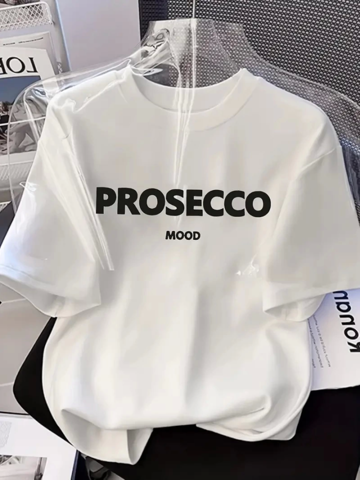 Baskılı Oversize Bisiklet Yaka T-shirt – Beyaz
