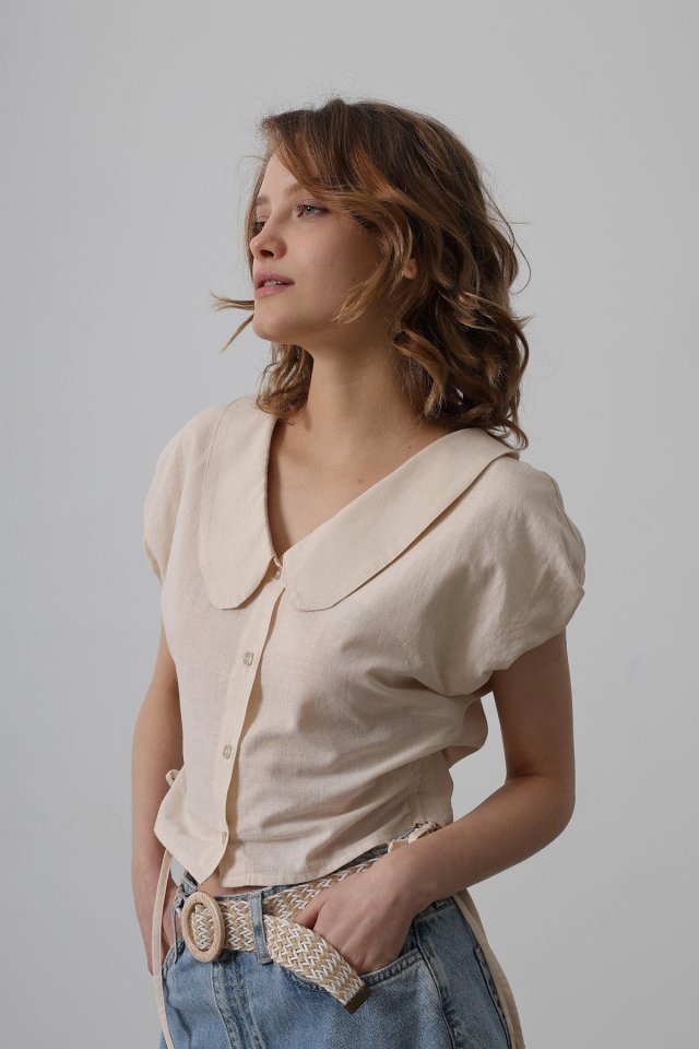 Bebe Yaka Yanları Bağlamalı Bluz – Taş