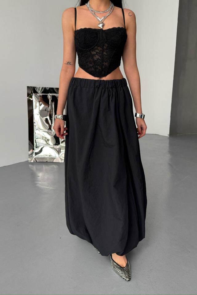 BEL LASTİKLİ BALON ETEK ŞANEL BOY SOFT KUMAŞ – Siyah