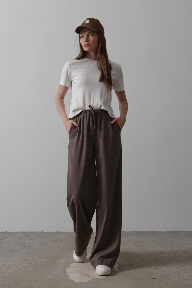Beli Lastikli Bol Paça Pantolon – Kahve