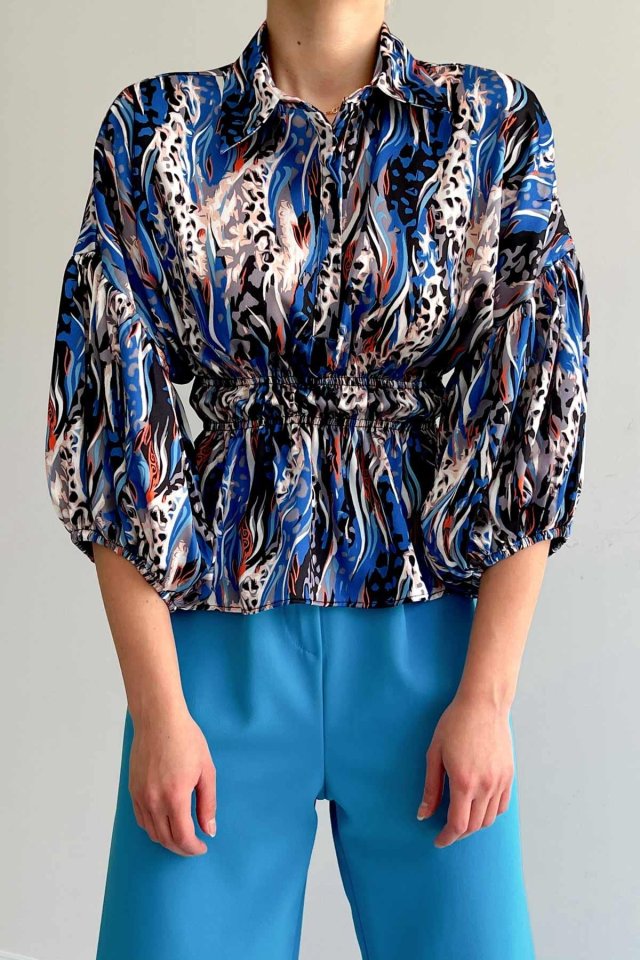 Kadın U Yaka Siyah şerit Detyalı Yarasa Kol Dalgıç Kumaş Arabiyeli Bluz