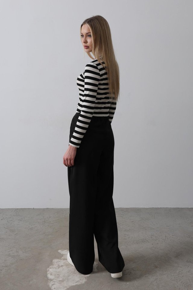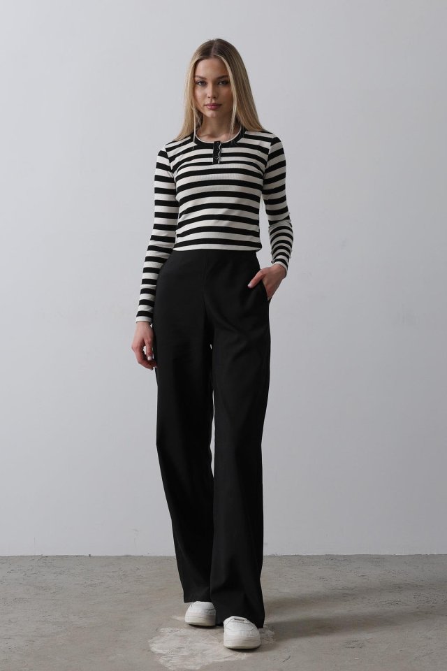 Beli Yarım Lastikli Palazzo Pantolon – Siyah