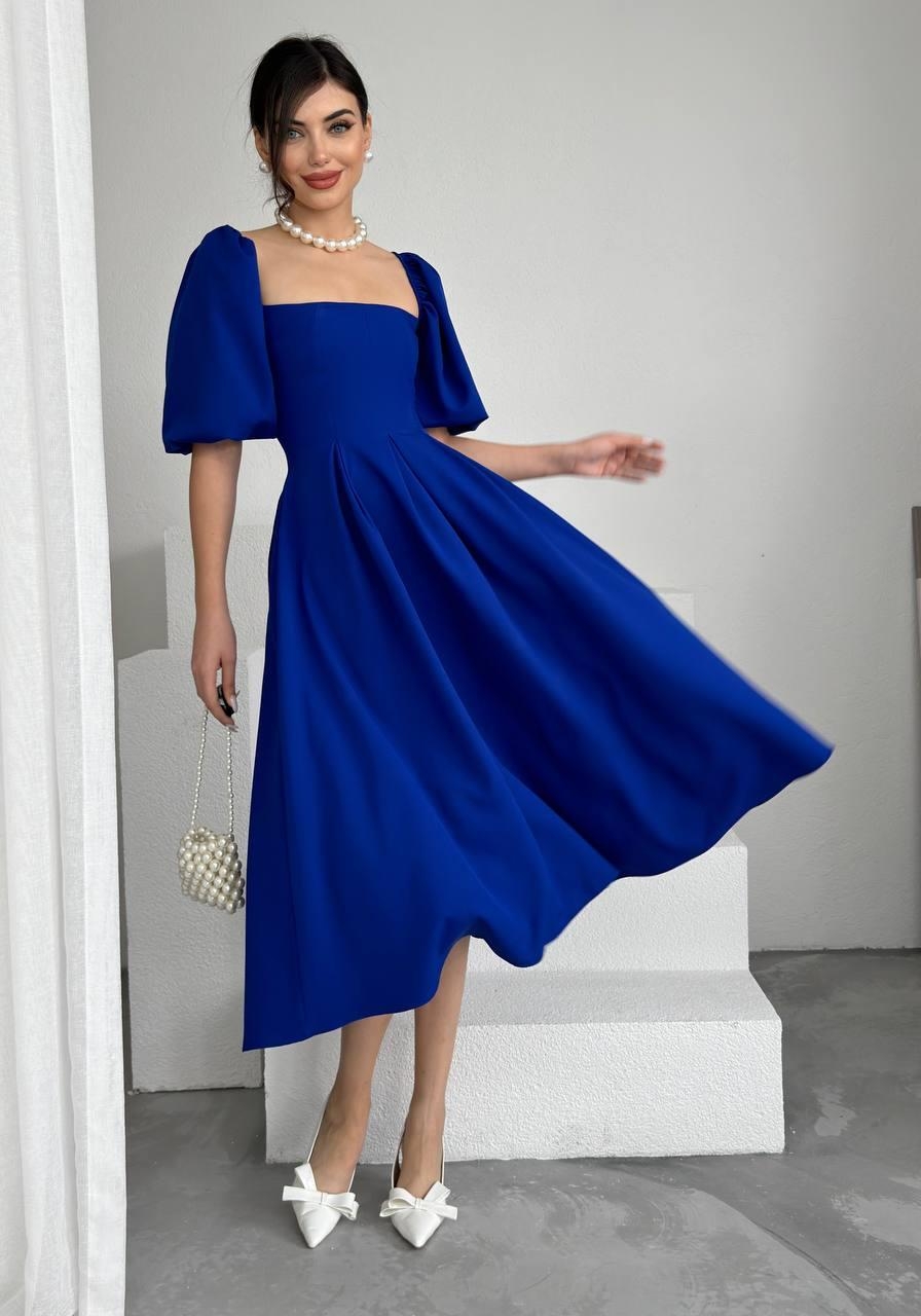 Kadın Kısa Fırfır Kollu V Yakalı Belden Kuşaklı Desenli Süprem Elbise