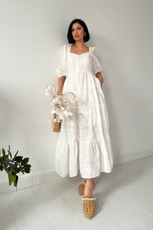 Kadın V Yakalı önden Düğmeli Kaşkorse Elbise