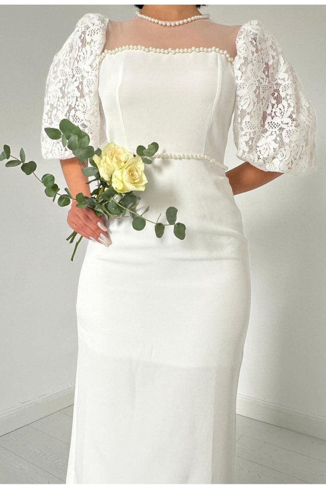 Kadın Kısa Kollu Bisiklet Yaka Yandan Yırtmaçlı Viskon Iki Iplik Elbise
