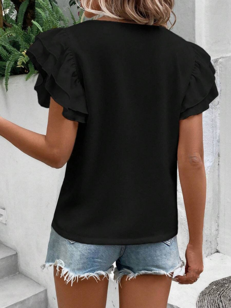 Bisiklet Yaka Kolları Volanlı İthal Krep Bluz