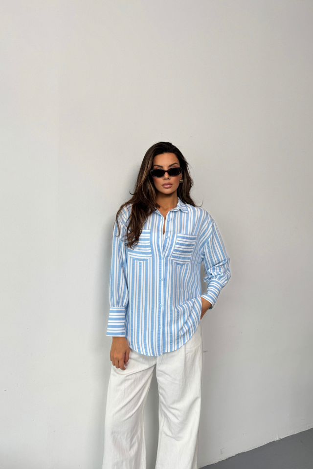 ÇİZGİLİ GÖMLEK – Mavi