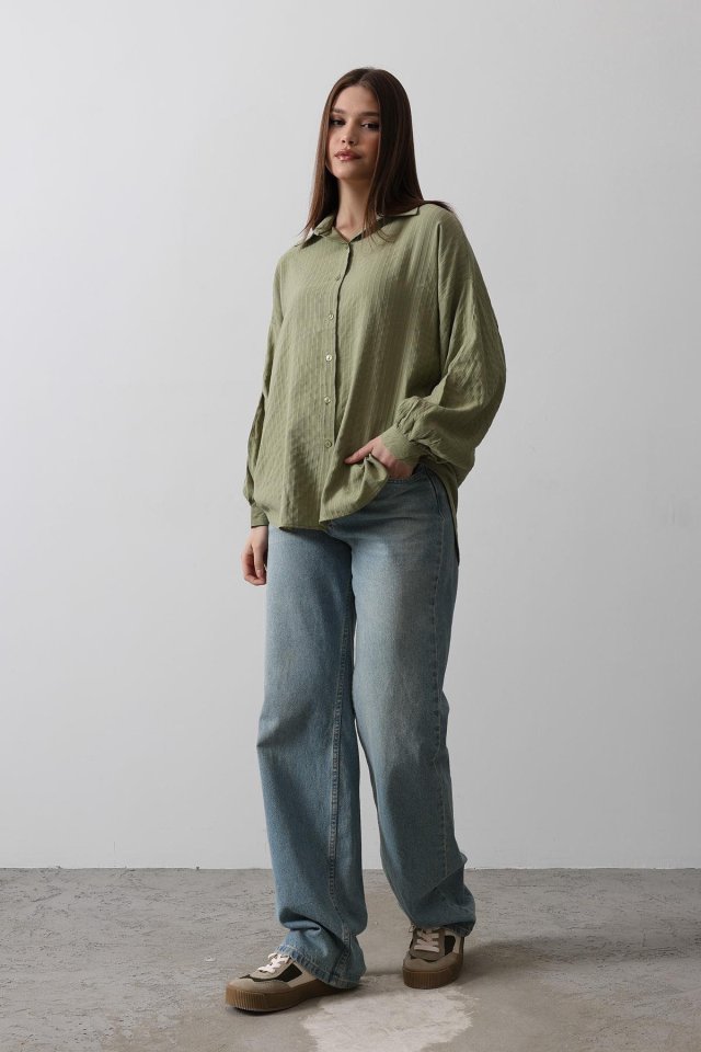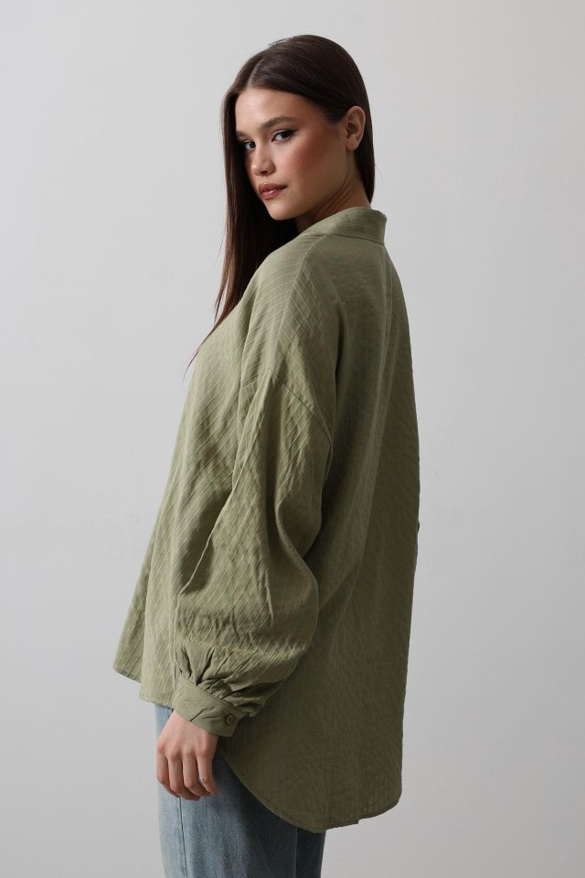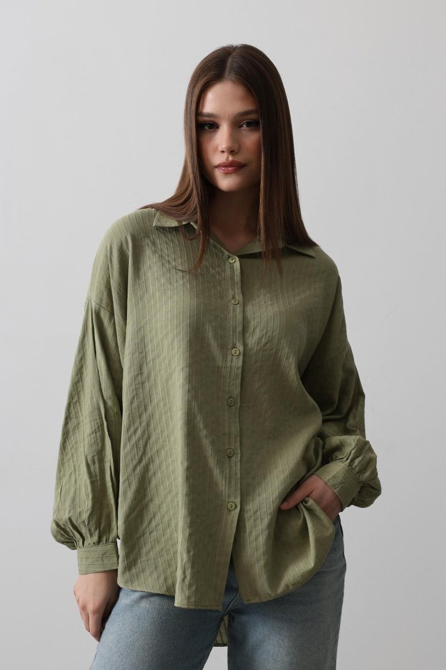 Çizgili Uzun Kol Gömlek – Haki