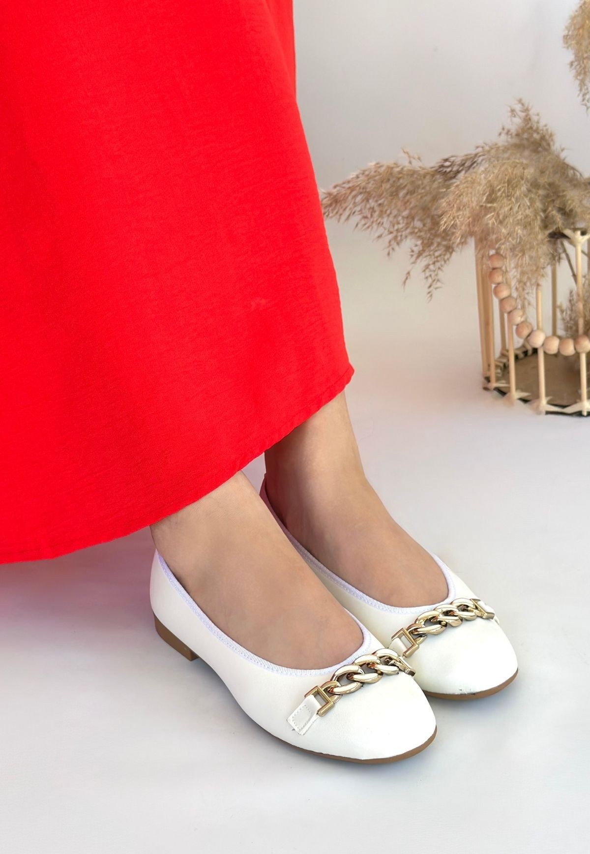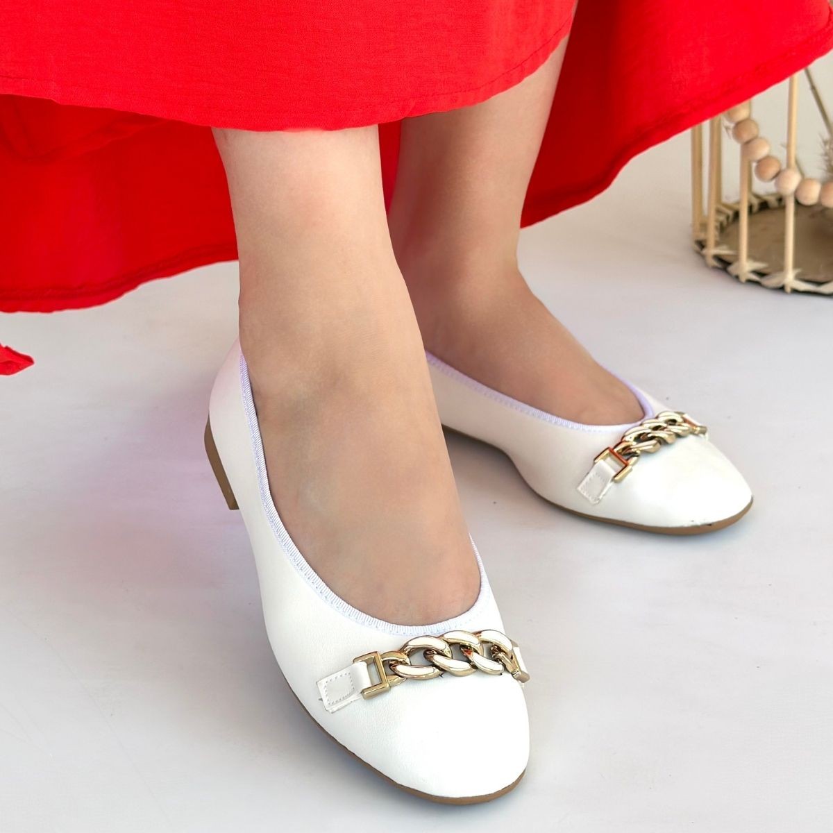Cleo Beyaz Cilt Babet Ayakkabı