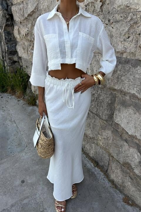 Crop Gömlekli Ve Eteği Büzgülü Tasarım Takım 10201