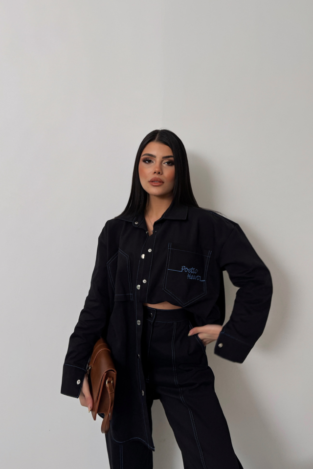 DENİM PUNTOLU GÖMLEK-PANTOLON TAKIM – Mavi