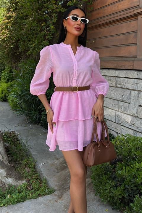 Deri Kemerli Fırfırlı Elbise 2901