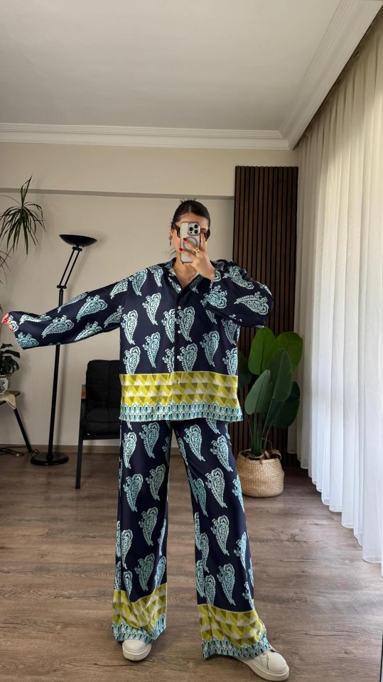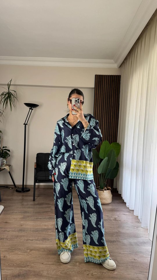 Kadın Uzun Kollu Bisiklet Yaka Viskon Iki Iplik Bluz Ve Pantolon Ikili Takım