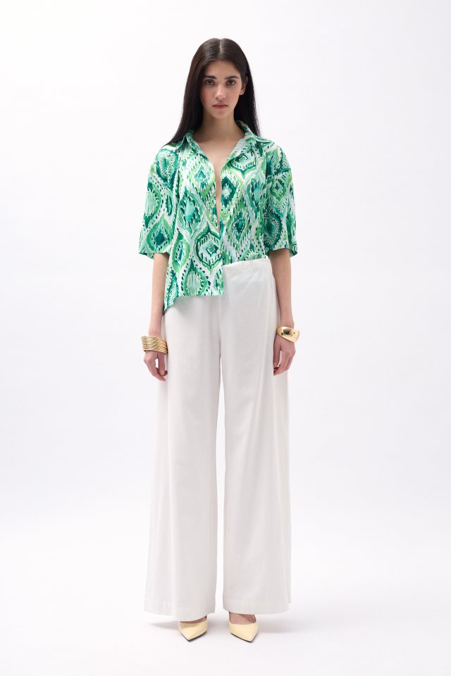 Kadın Uzun Kollu Bisiklet Yaka Viskon Iki Iplik Bluz Ve Pantolon Ikili Takım