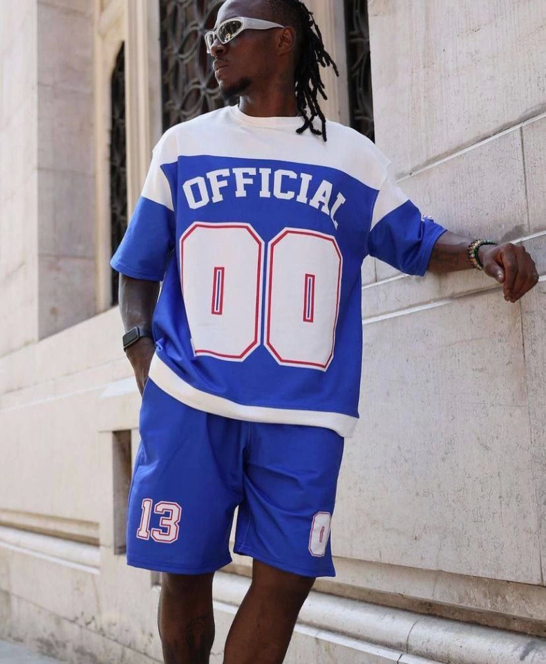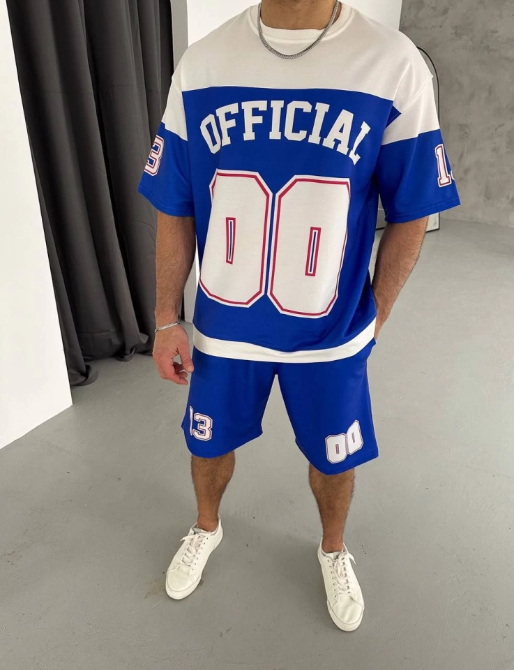 Dijital 00 Baskılı Şortlu Takım – Mavi