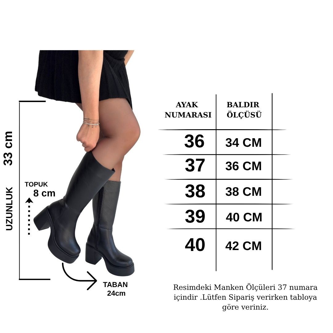 Detay: Topuklu Yandan Fermuarlı Diz Altı Çizme