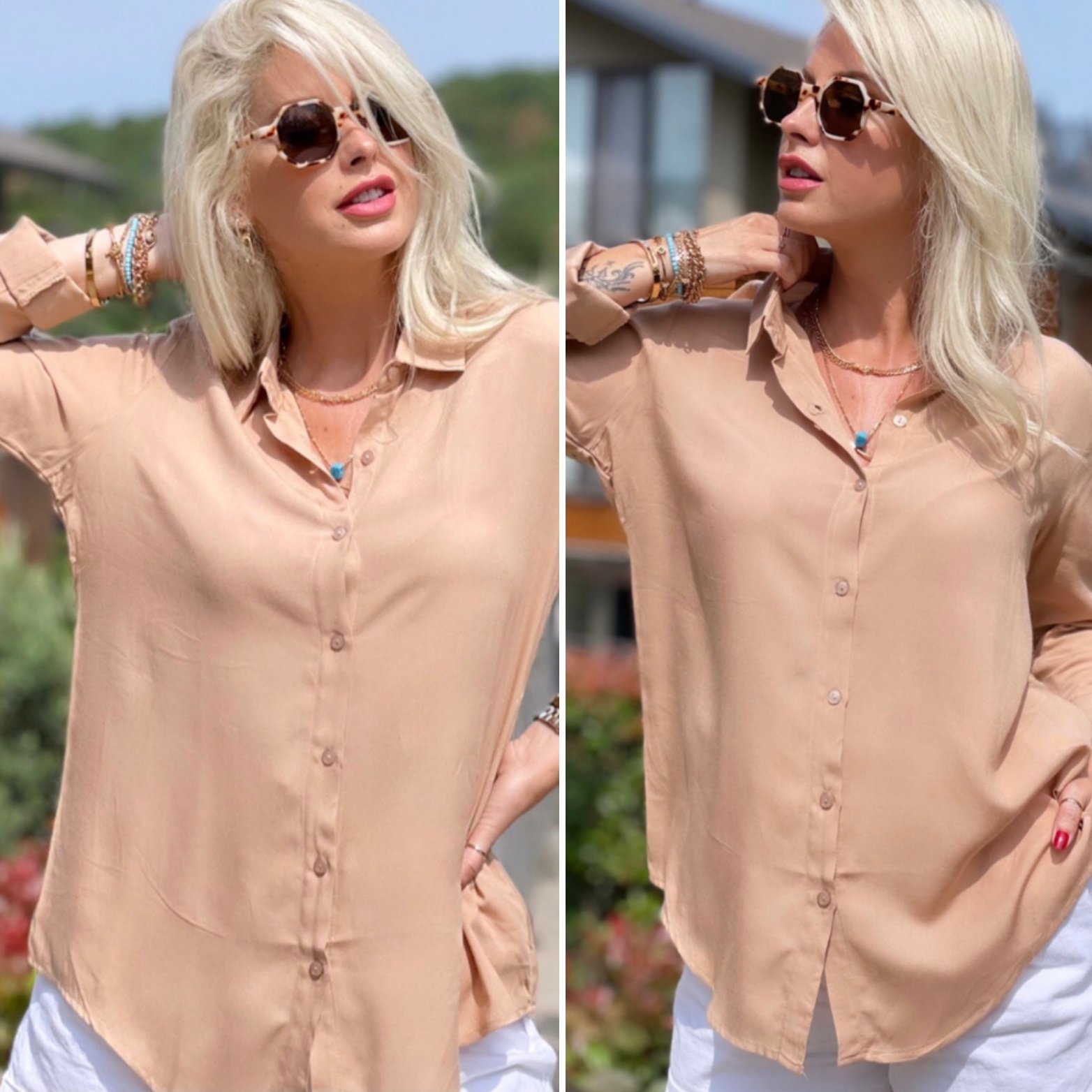 Batik Desenli Saten Gömlek 3445