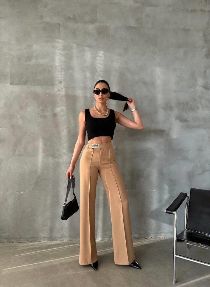 DREAMS ETİKETLİ PALAZZO PANTOLON – Bej
