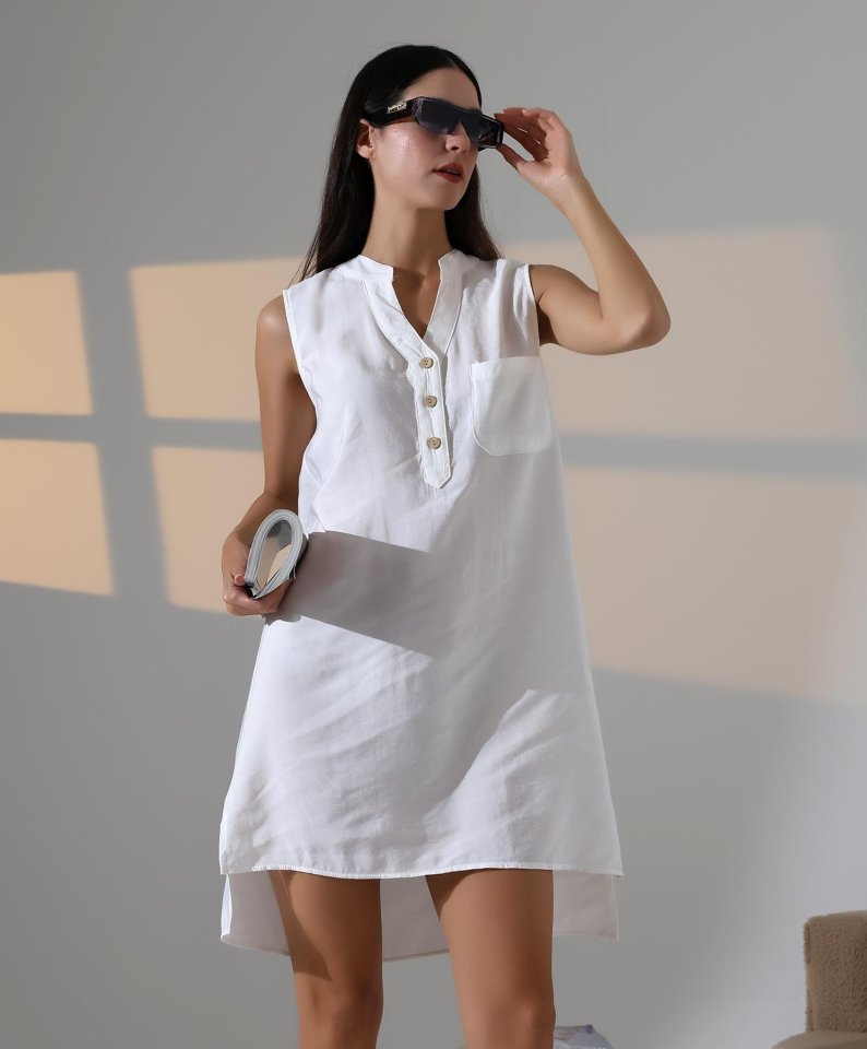 Kadın Uzun Kollu V Yakalı Yanlardan Büzgülü Kısa Sandy Elbise